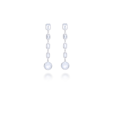 此耳環配鑲了各五顆的透明淺藍拓帕石,簡單俐落的設計讓每個戴上這對耳環的人更顯得您的不凡品味,推薦給您。